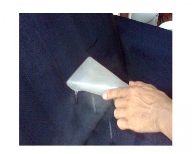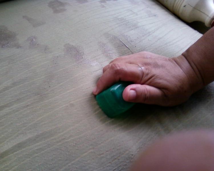 9. ตรวจสภาพครั้งสุดท้าย เมื่อผ้าเริ่มแห้งหากมีรอยเปื้อน หลงเหลืออยู่จะเห็นขัดมากขึ้น และเก็บจุดเป็นครั้งสุดท้ายก่อนเก็บเครื่องมือ